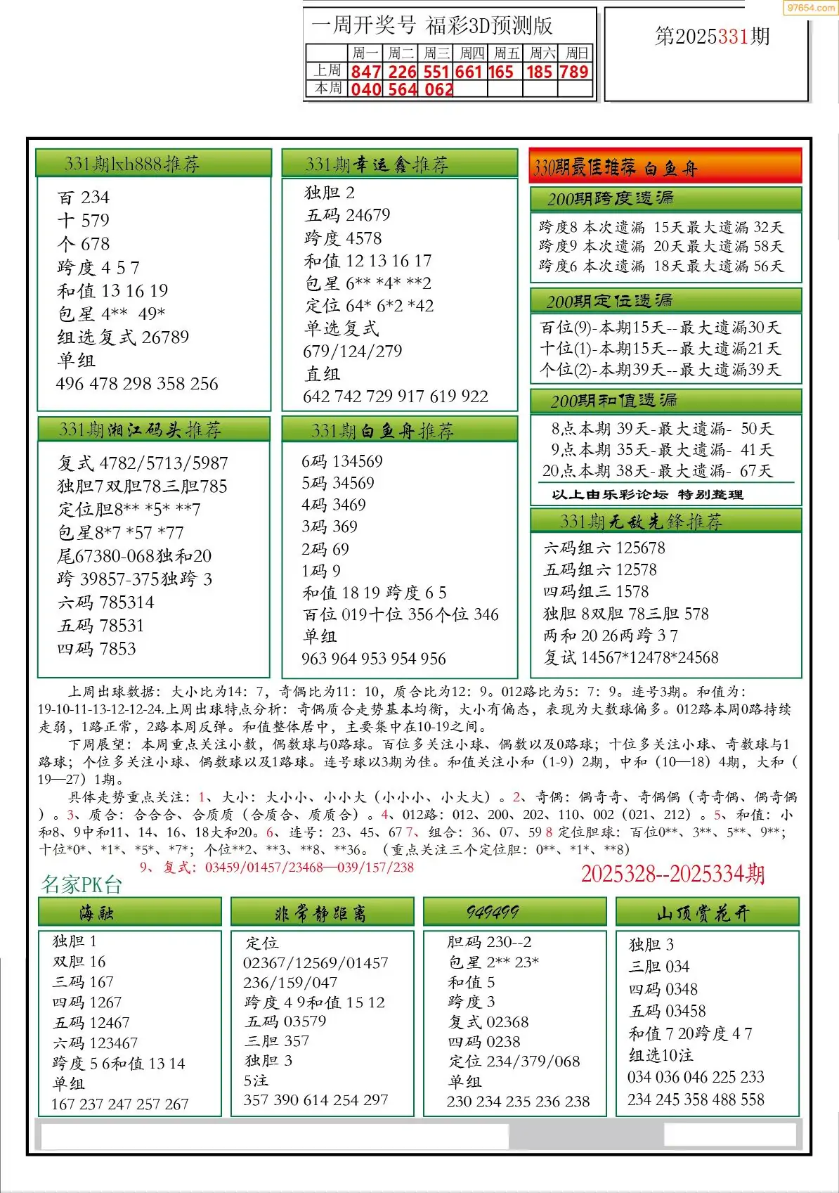 2025年331期内部万元报3d图迷