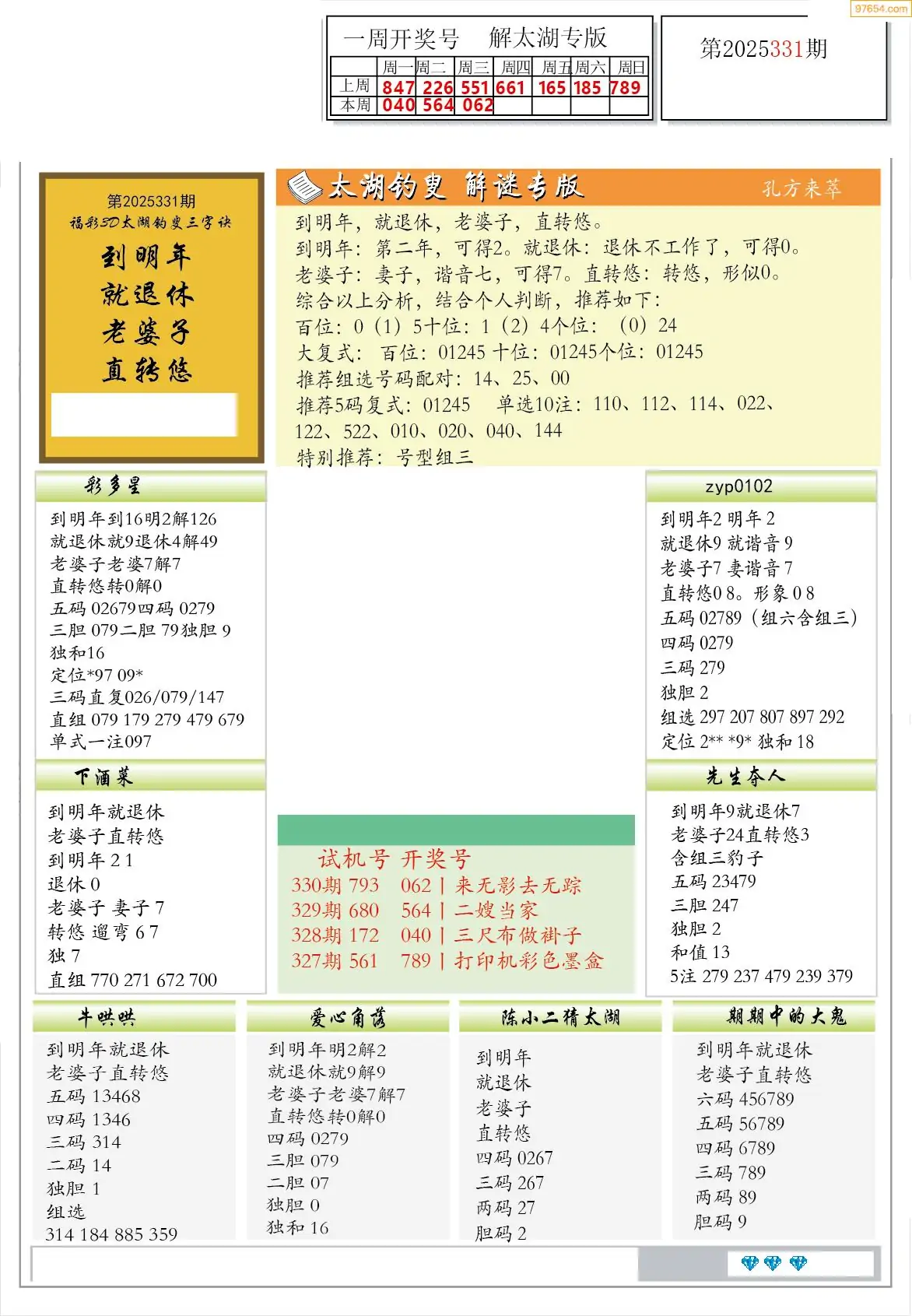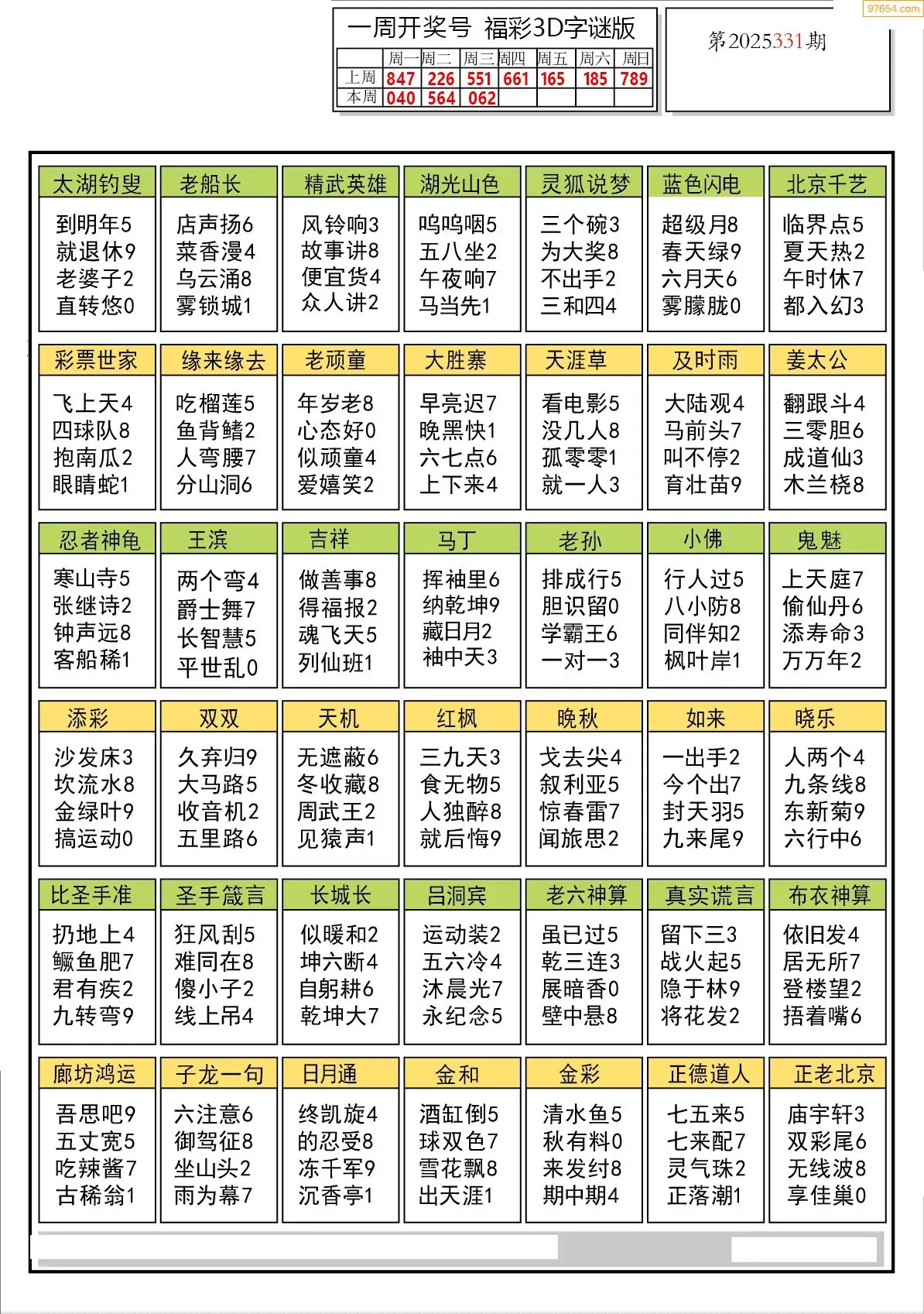 25年331期3d选号彩报图谜画谜