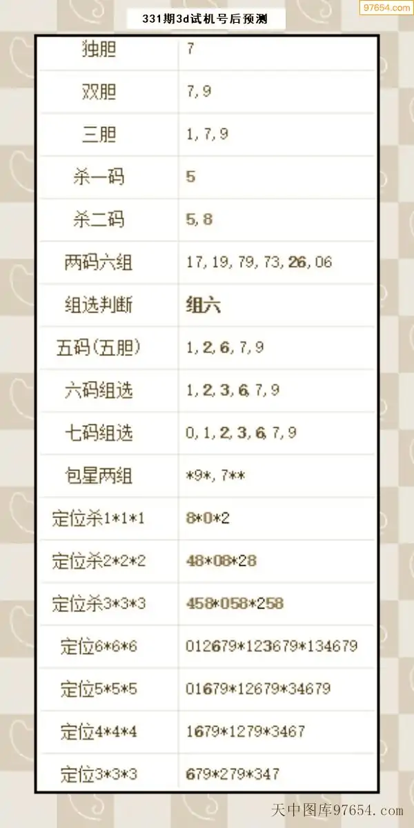 331期西南胆王预测本期3D开奖结果