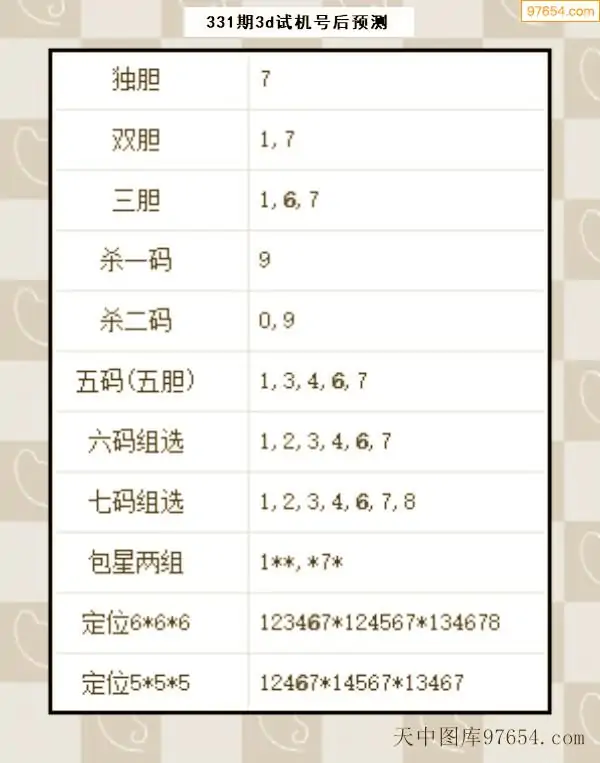 331期西南胆王预测本期3D开奖结果