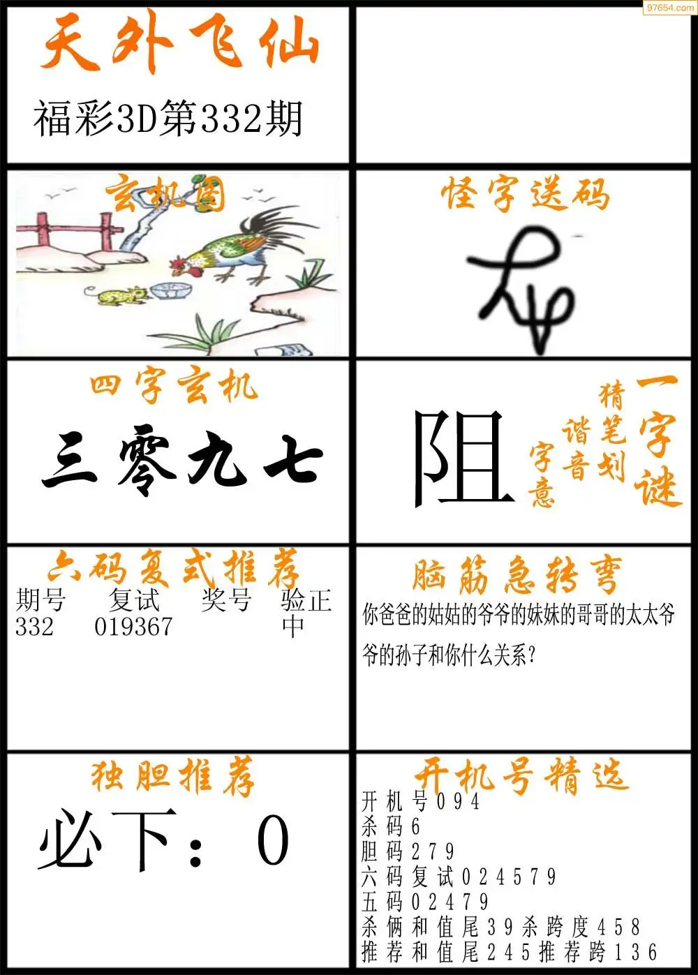 332期福彩3d天外飞仙B版