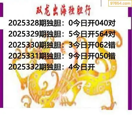 332期97654本站收集胆码出号预测
