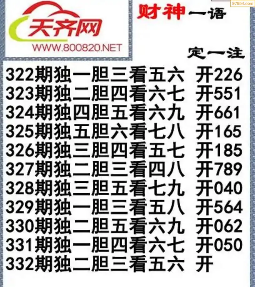 332期3D晚秋(乙种和值)谜:提了一成 D:期中满分