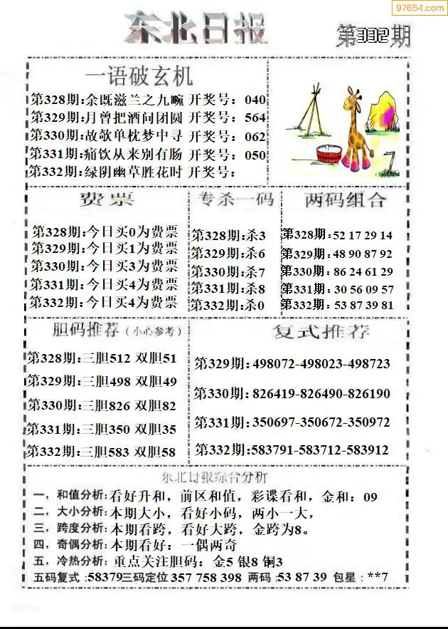 25年332期3d选号彩报图谜画谜