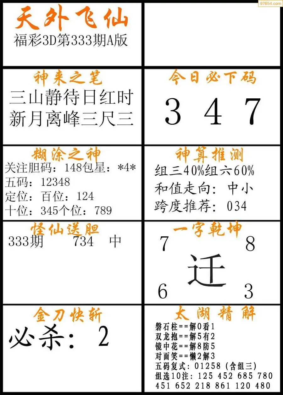 333期福彩3d天外飞仙A版