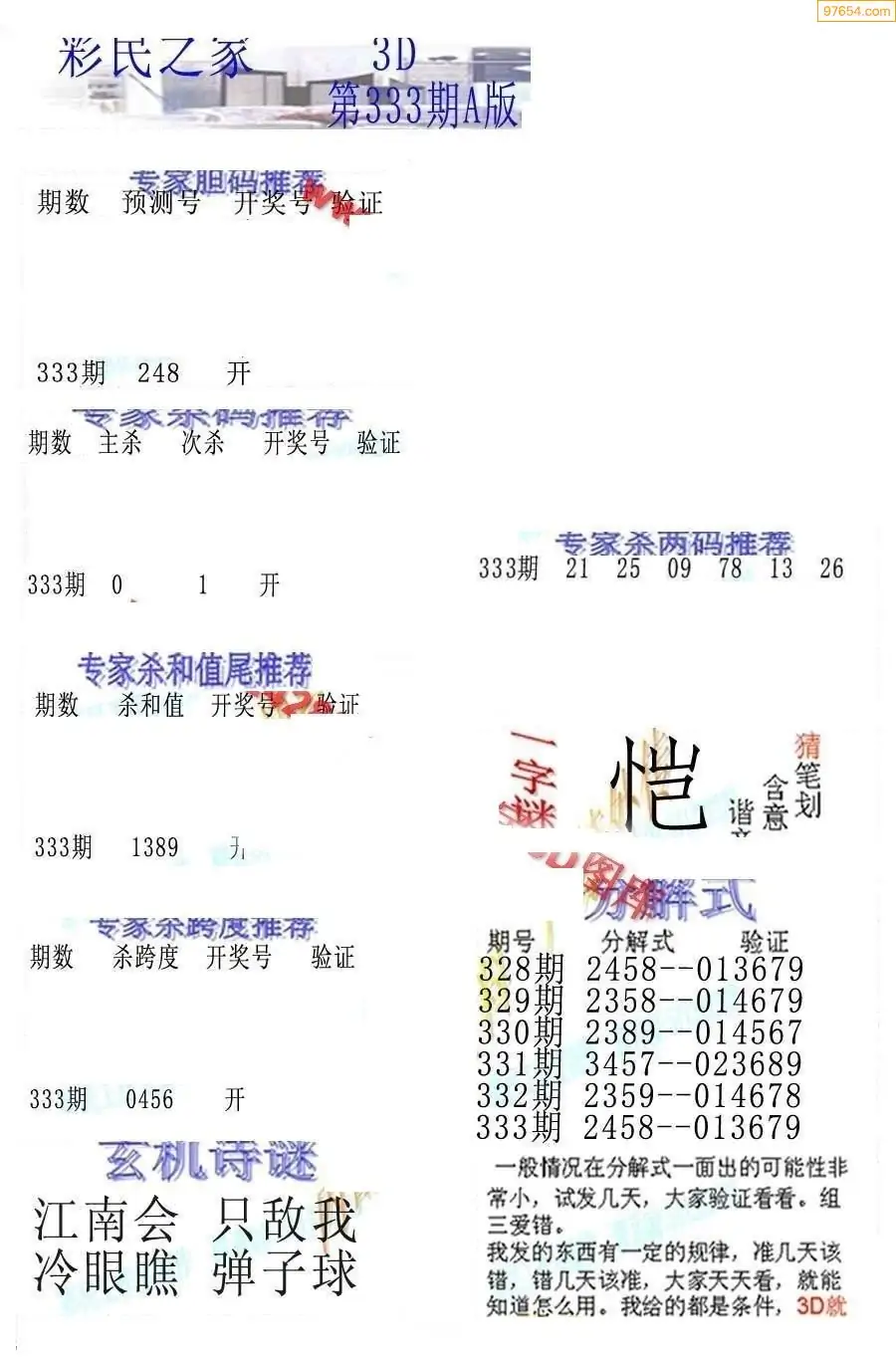 25333期3D彩民各类资料A版