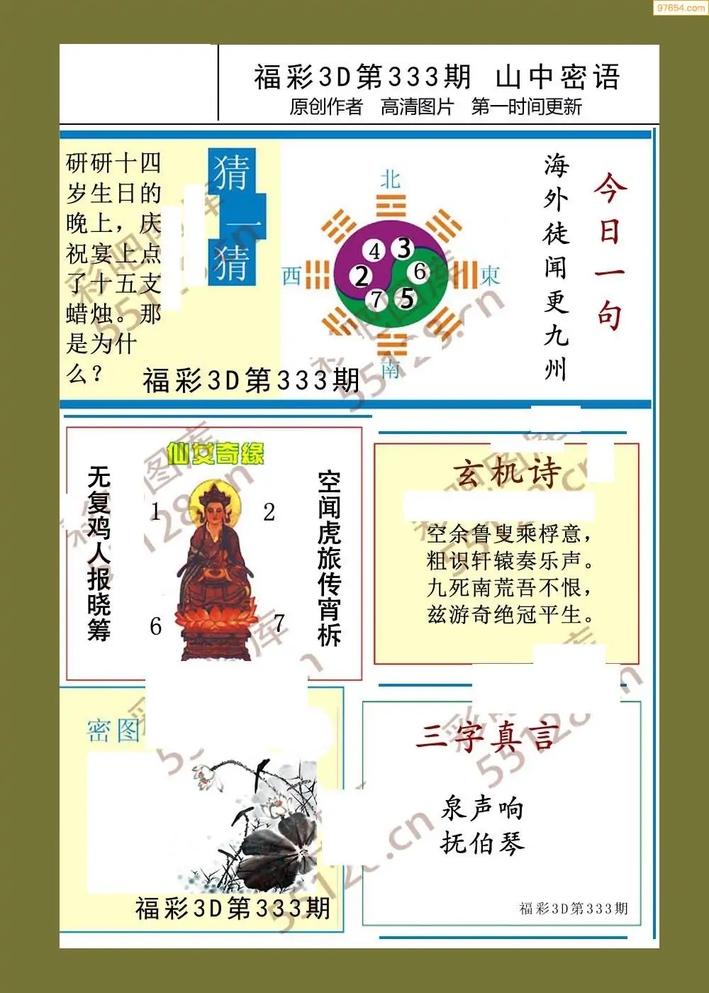福彩3D25336期蓝仙子一句定三码图谜