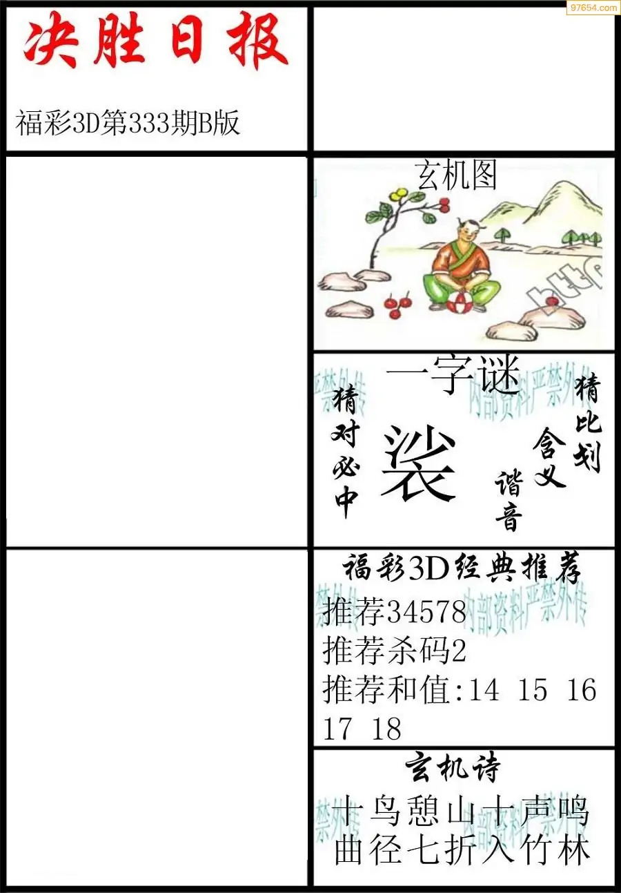 福彩3D25335期蓝仙子一句定三码图谜