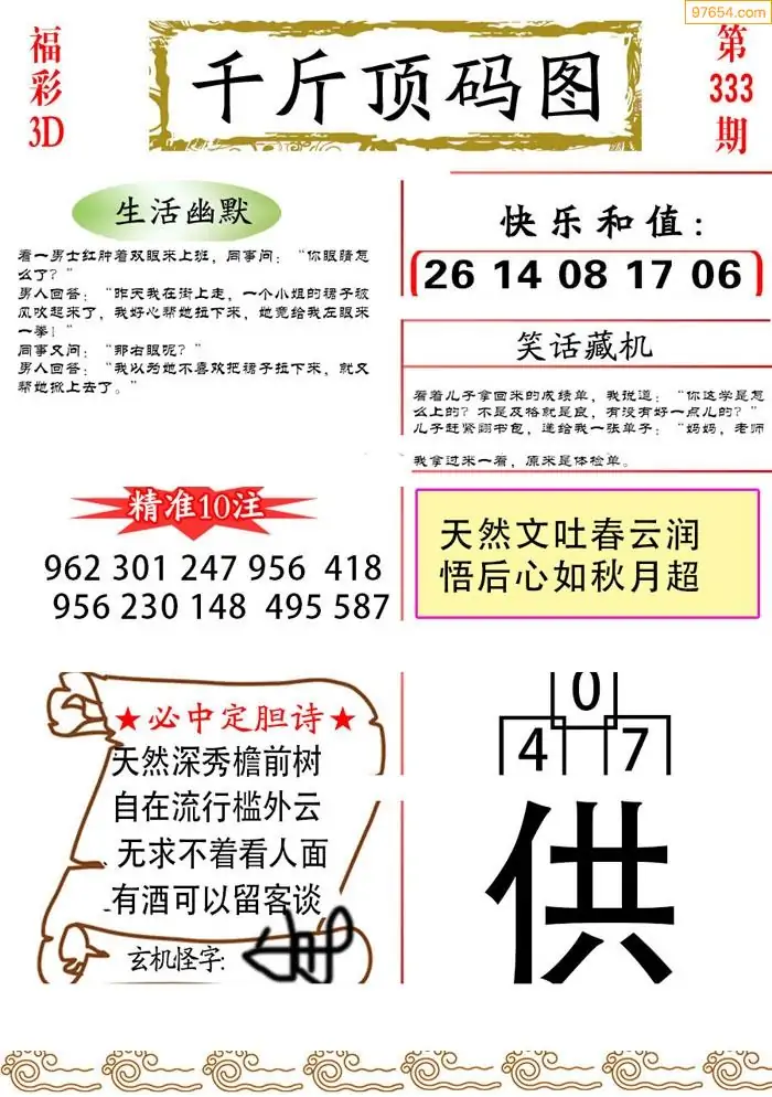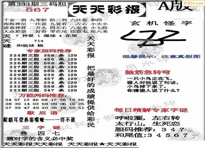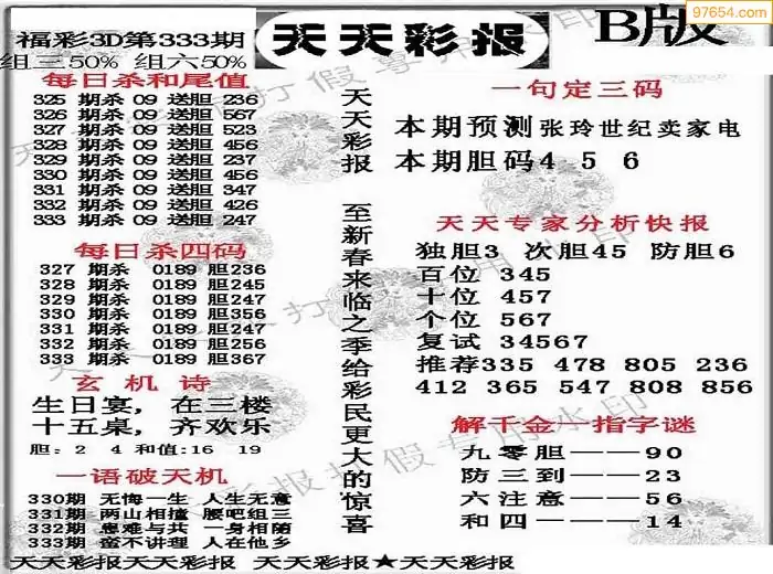 25年335期3d选号彩报图谜画谜