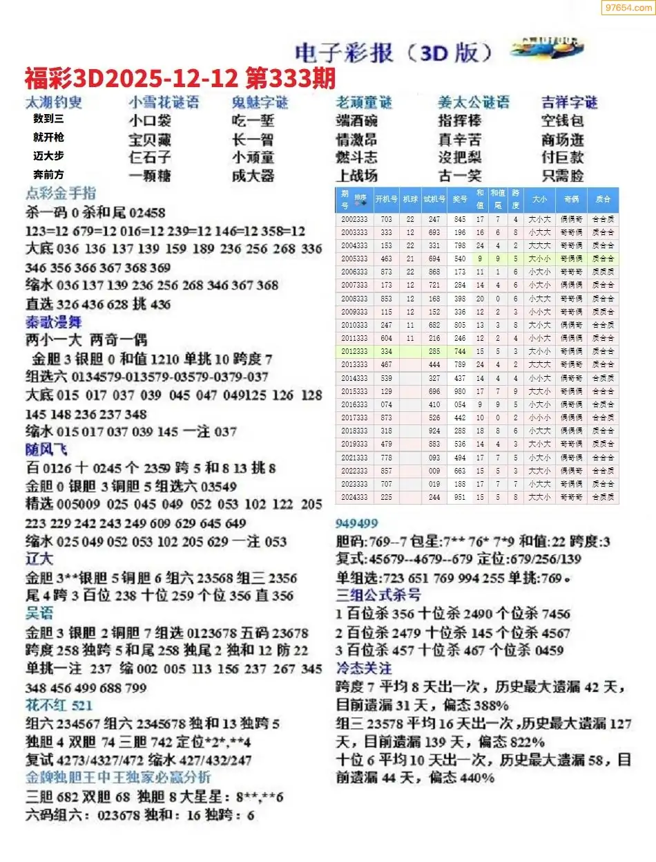 25年335期3d选号彩报图谜画谜