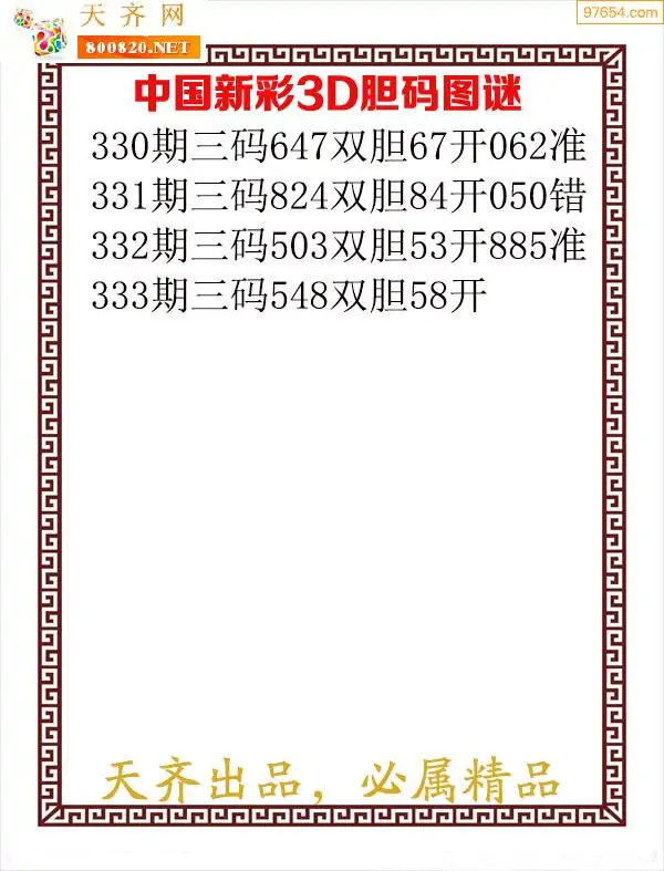 2025333期彩彩网3d原创图迷搜集(天中整理)