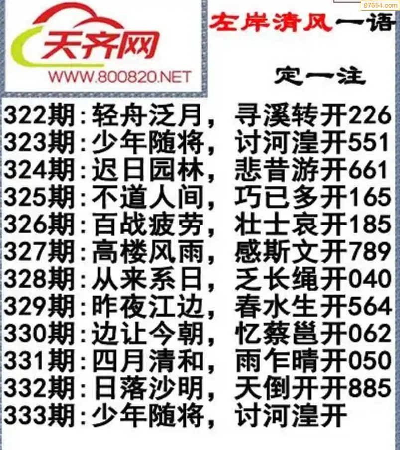333期3D晚秋(和值)谜:两年之约 D:本期无二