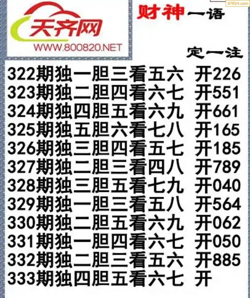 333期3D晚秋(和值)谜:两年之约 D:本期无二