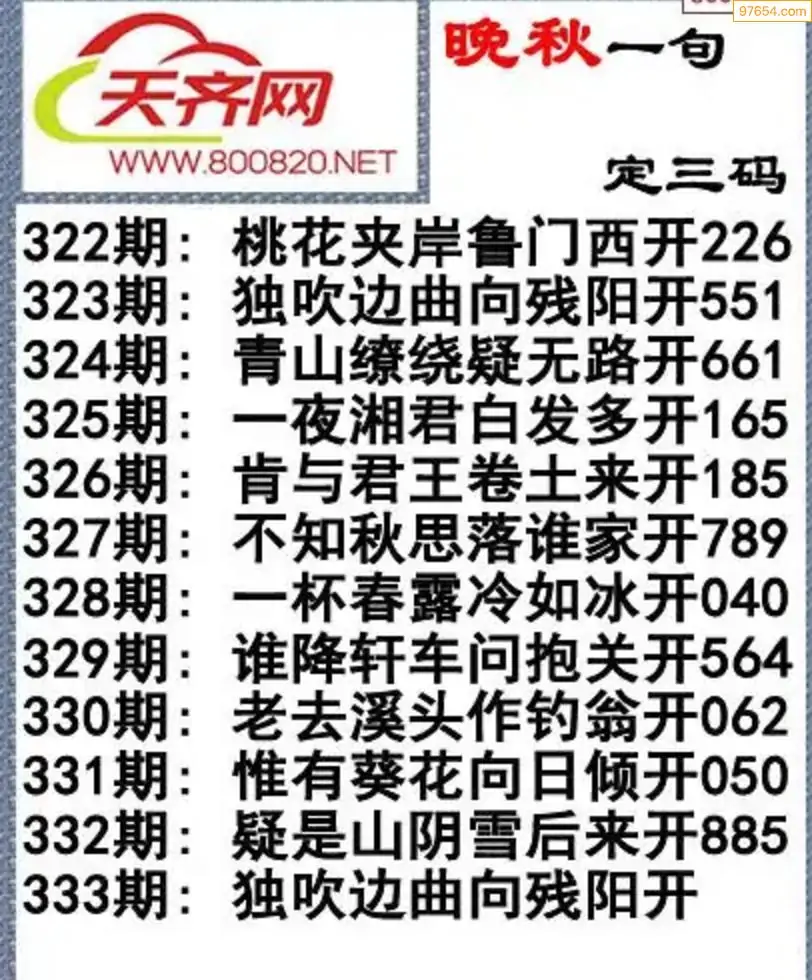 333期3D晚秋(和值)谜:两年之约 D:本期无二