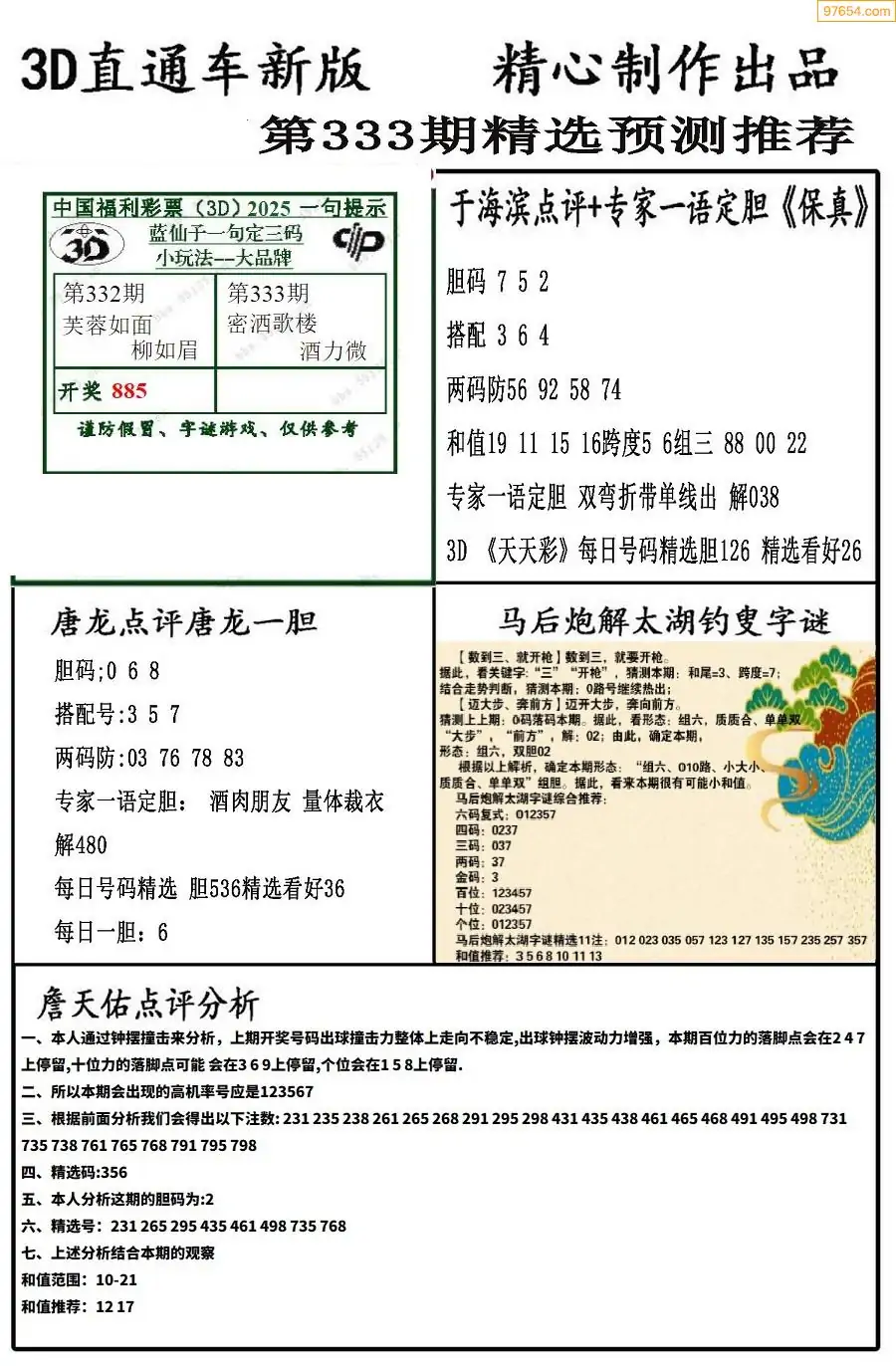 25年337期3d选号彩报图谜画谜