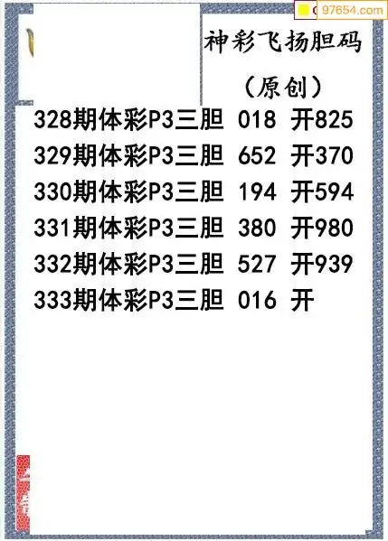 25333期神彩飞扬体彩P3三胆图谜