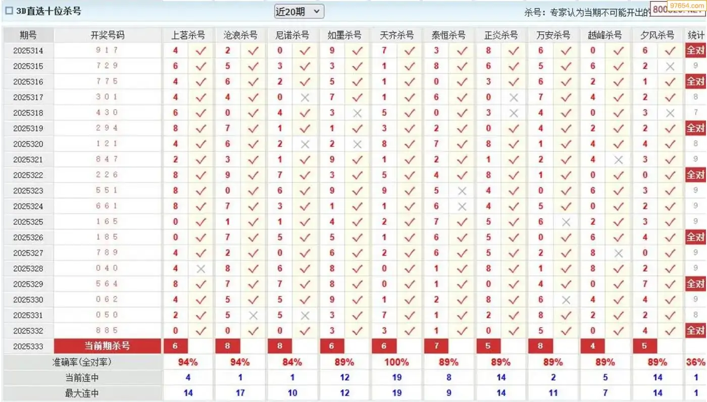 福彩3d天中25年334期杀码 7连中