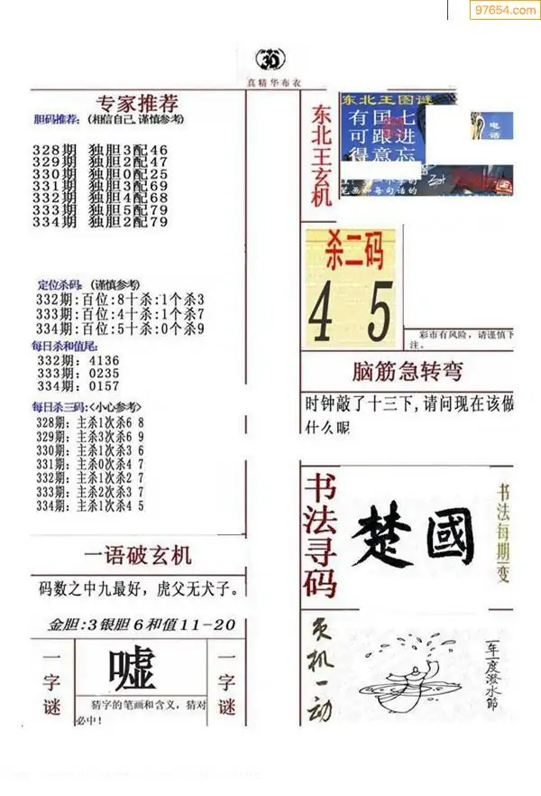 334期真版布衣神算专家推荐