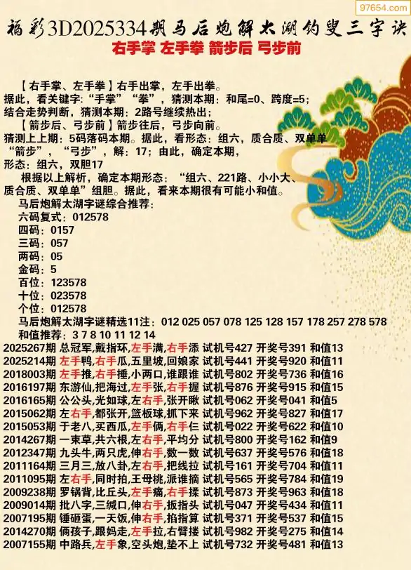 25年334期马后炮解3d太湖钓叟之 右手掌