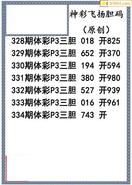 25334期神彩飞扬体彩P3三胆图谜