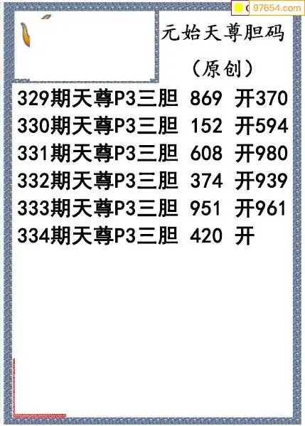 25334期元始天尊排列3胆码图