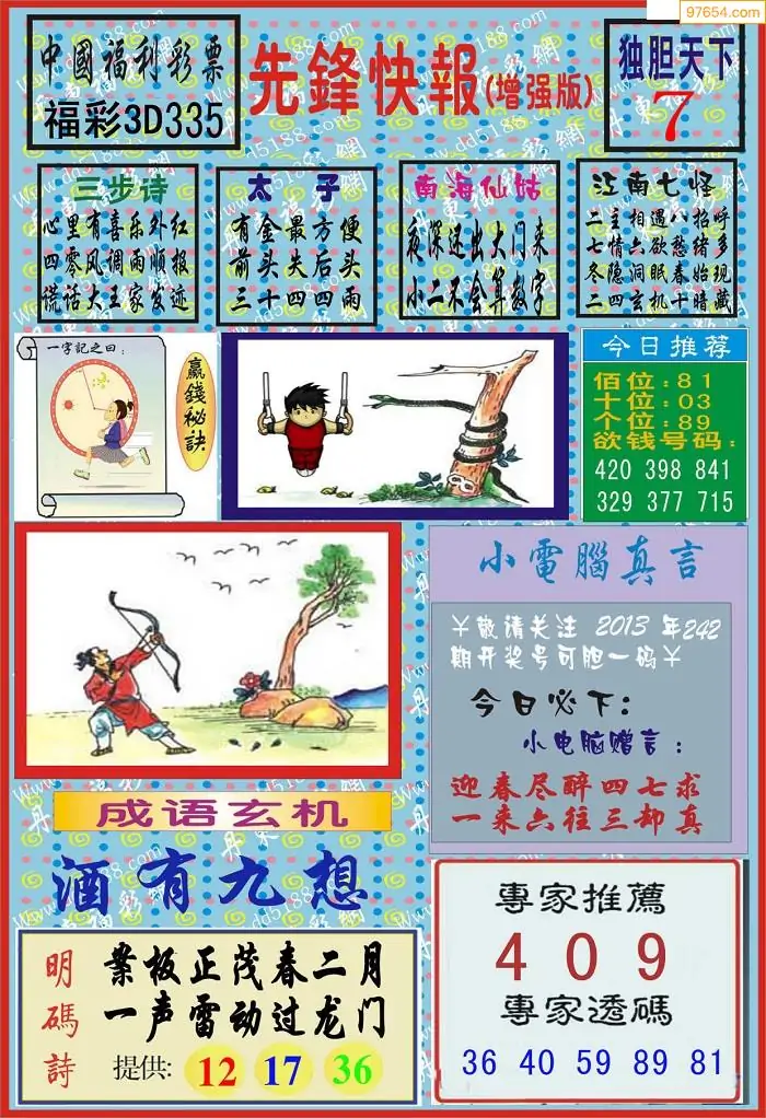 (8)25年335期今日3d各类彩报汇总