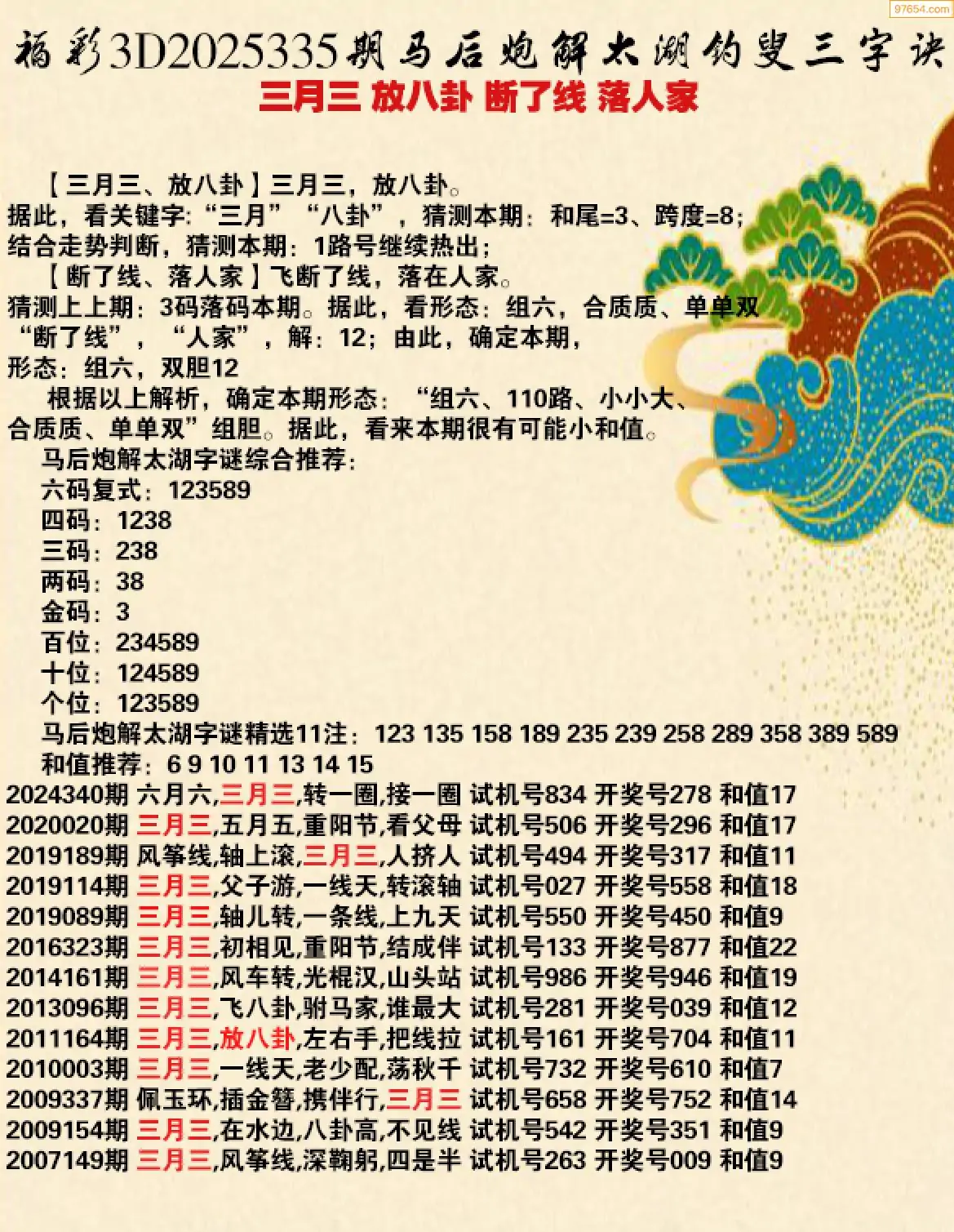 25年335期马后炮解3d太湖钓叟之 三月三