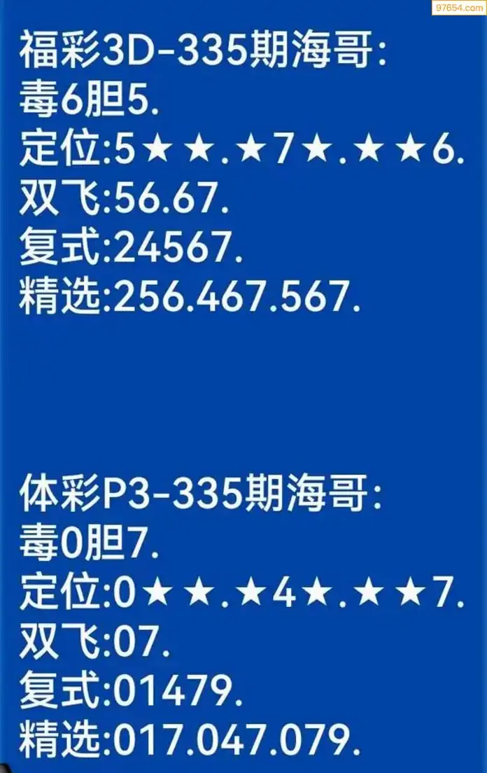 2025年335期普度众生今晚3D推荐胆码 7连中