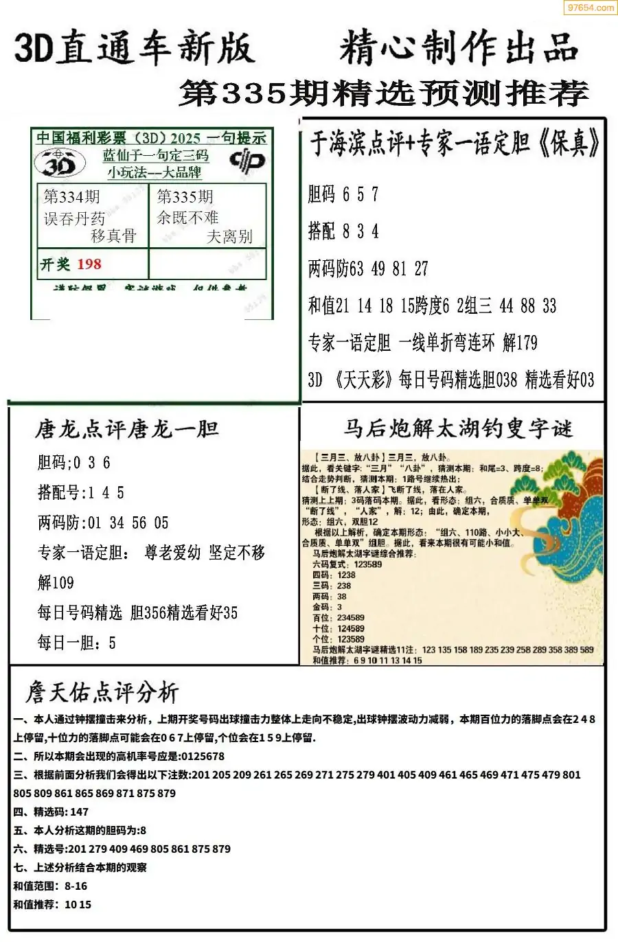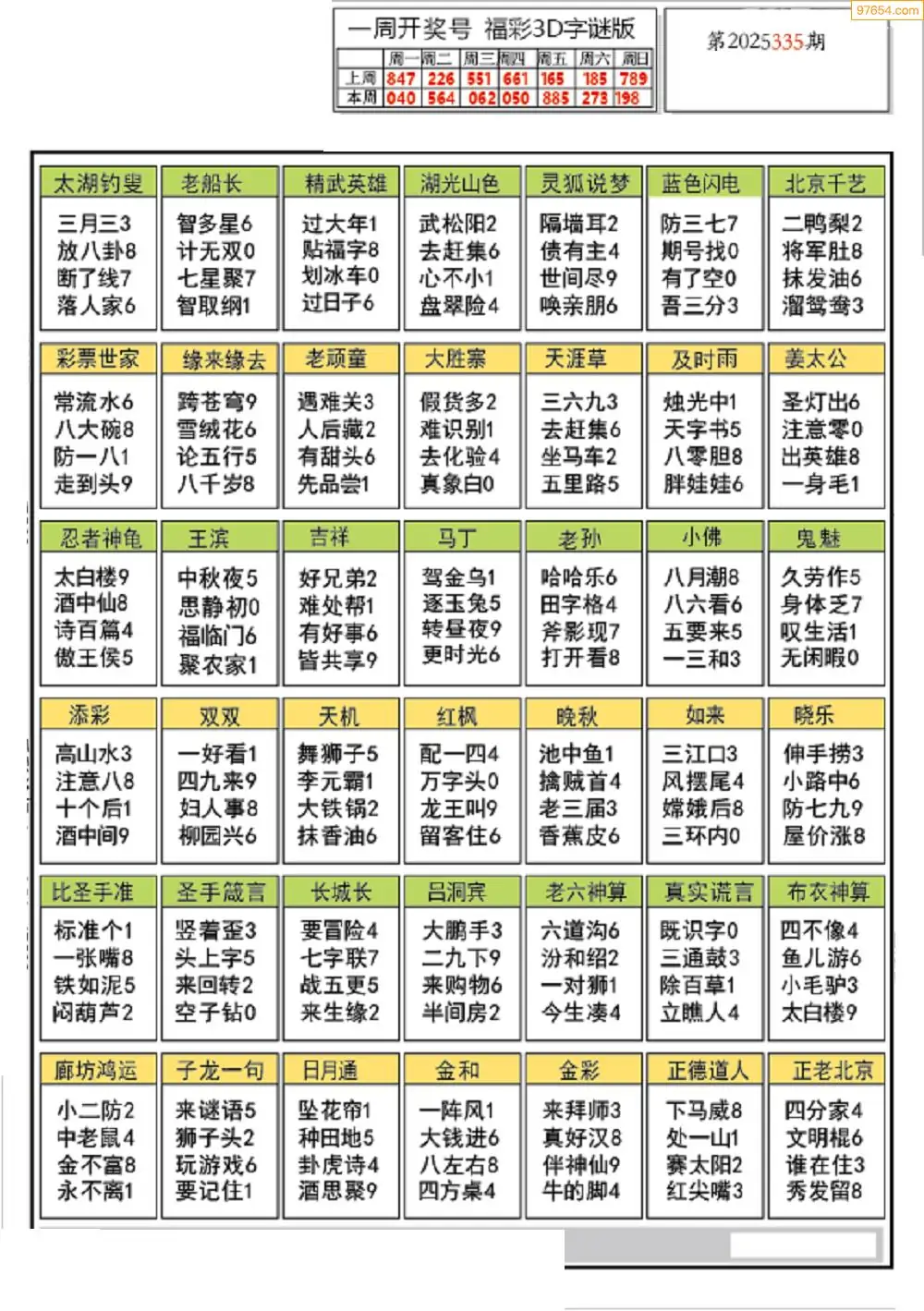 (3)2025336期3D预测总汇全图_福彩3d图谜字谜总汇