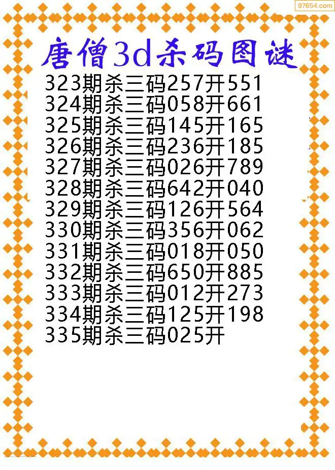 (3)2025336期3D预测总汇全图_福彩3d图谜字谜总汇