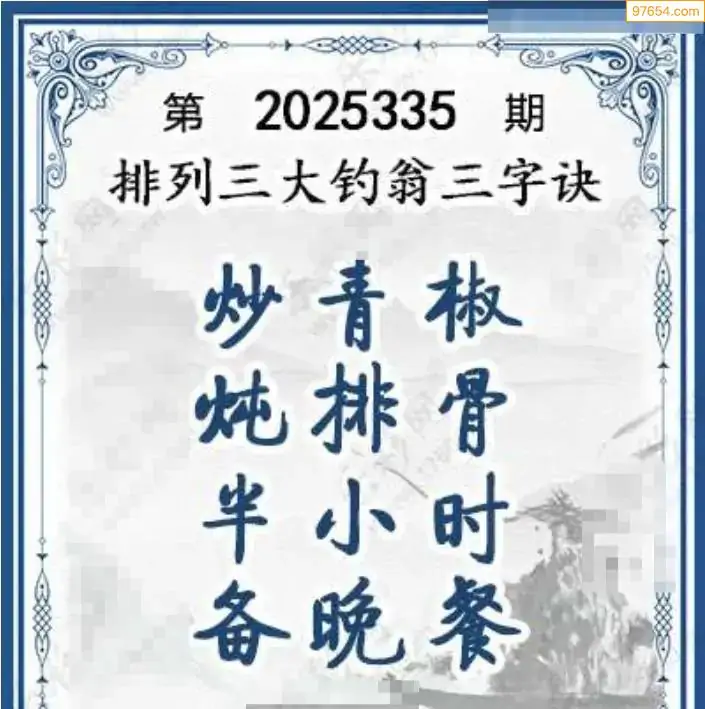 25年体彩p3第335期大钓翁三字诀