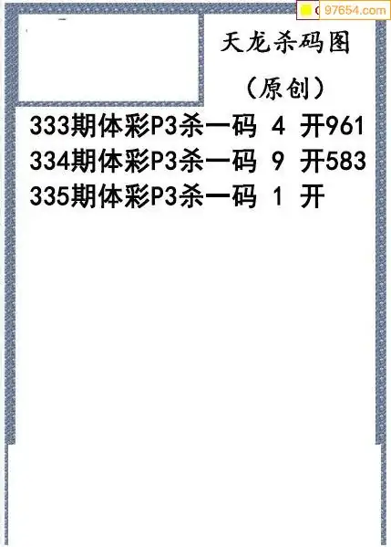 25年335期天龙体彩P3杀码图谜