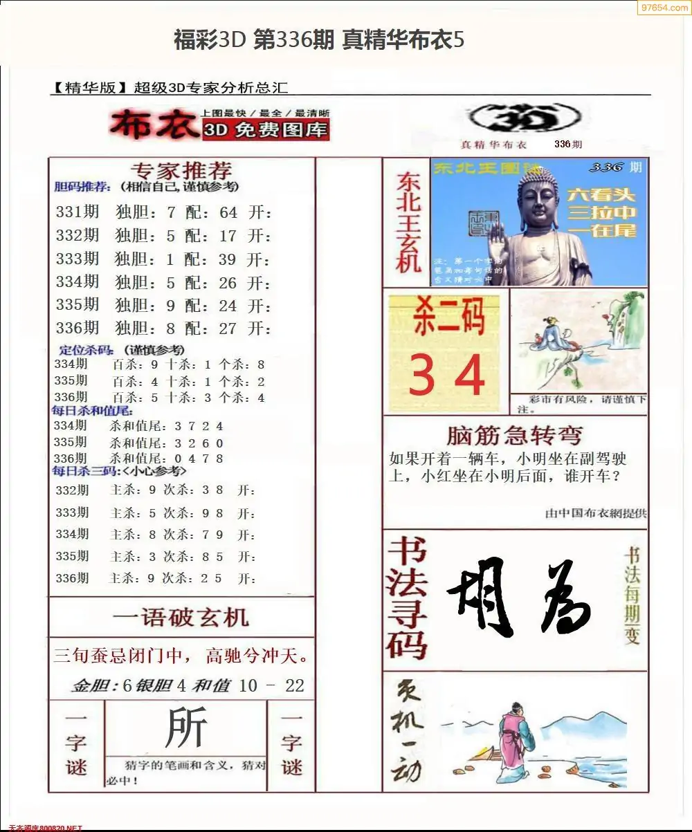 336期3D彩吧图库精华布衣图123456分享