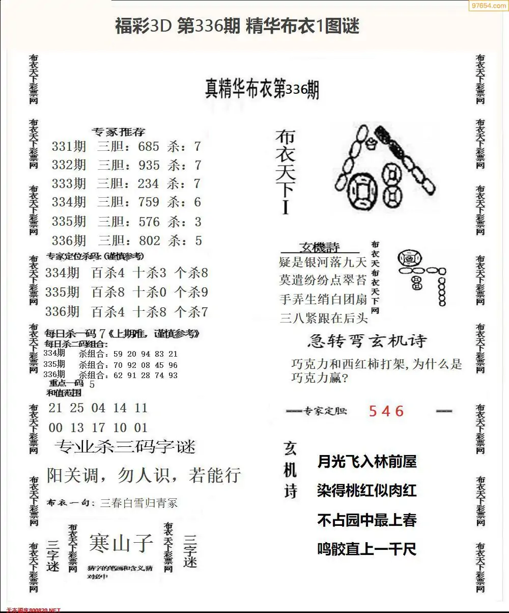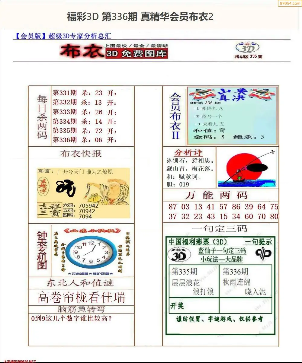 福彩336期3d真精华布衣+布衣早报(转载)