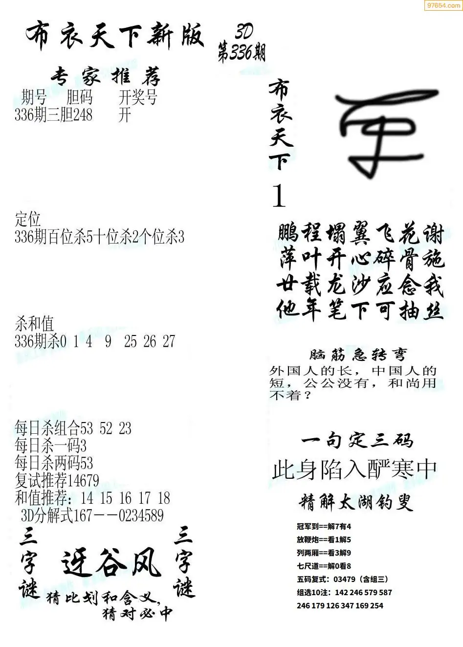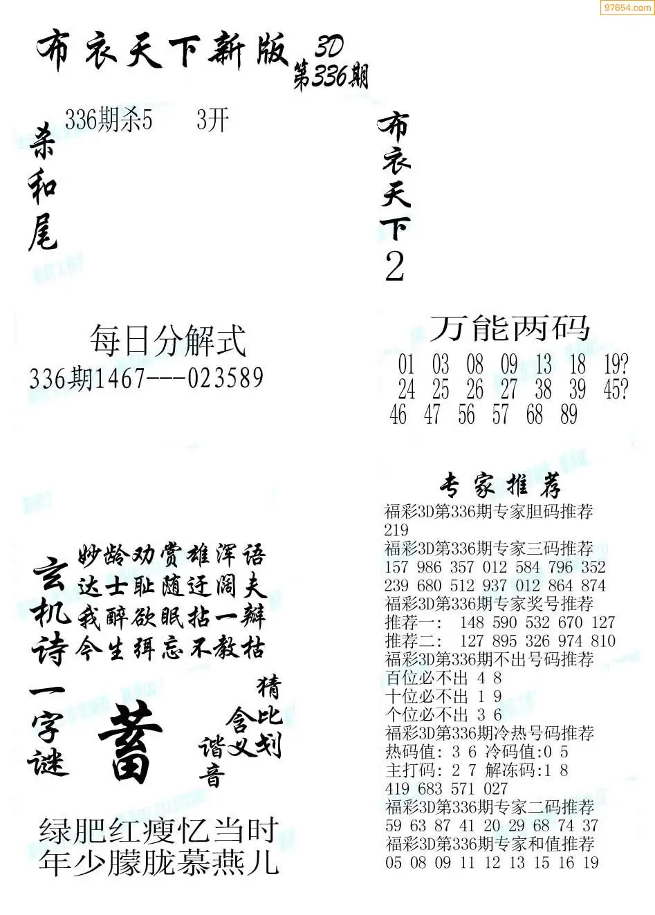 福彩336期3d真精华布衣+布衣早报(转载)