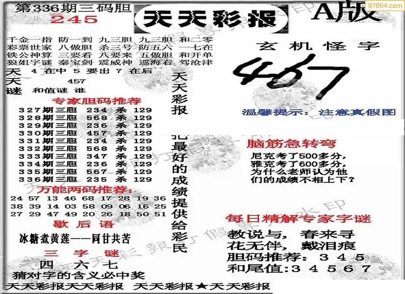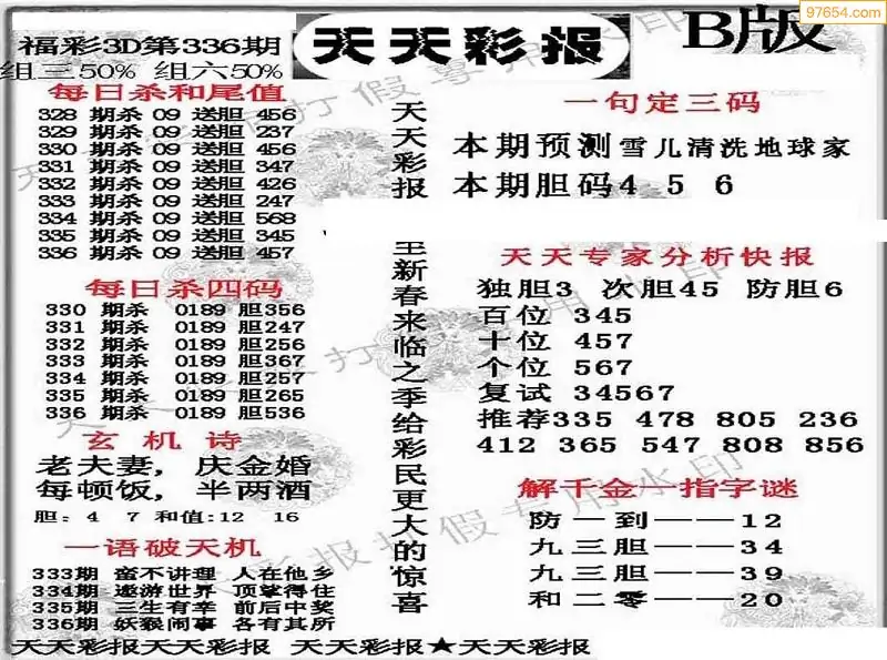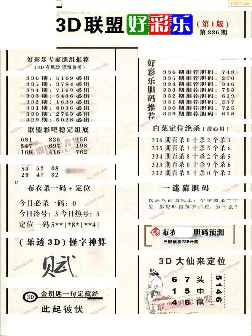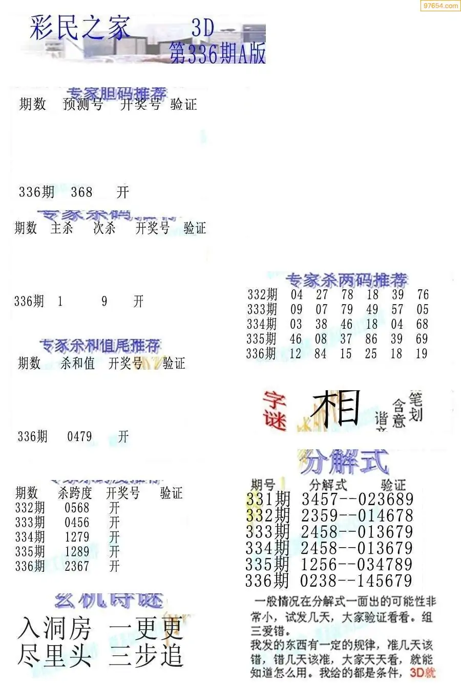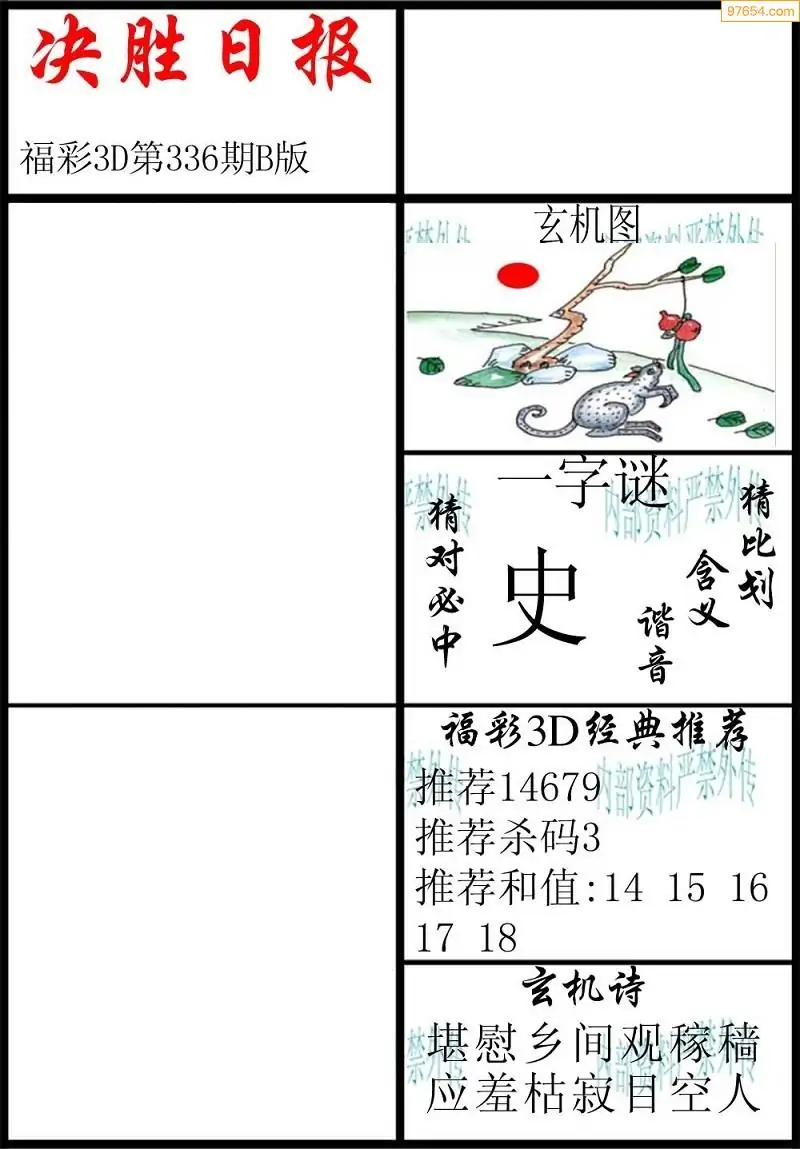 (3)2025336期3D预测总汇全图_福彩3d图谜字谜总汇