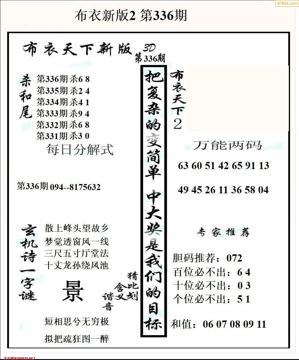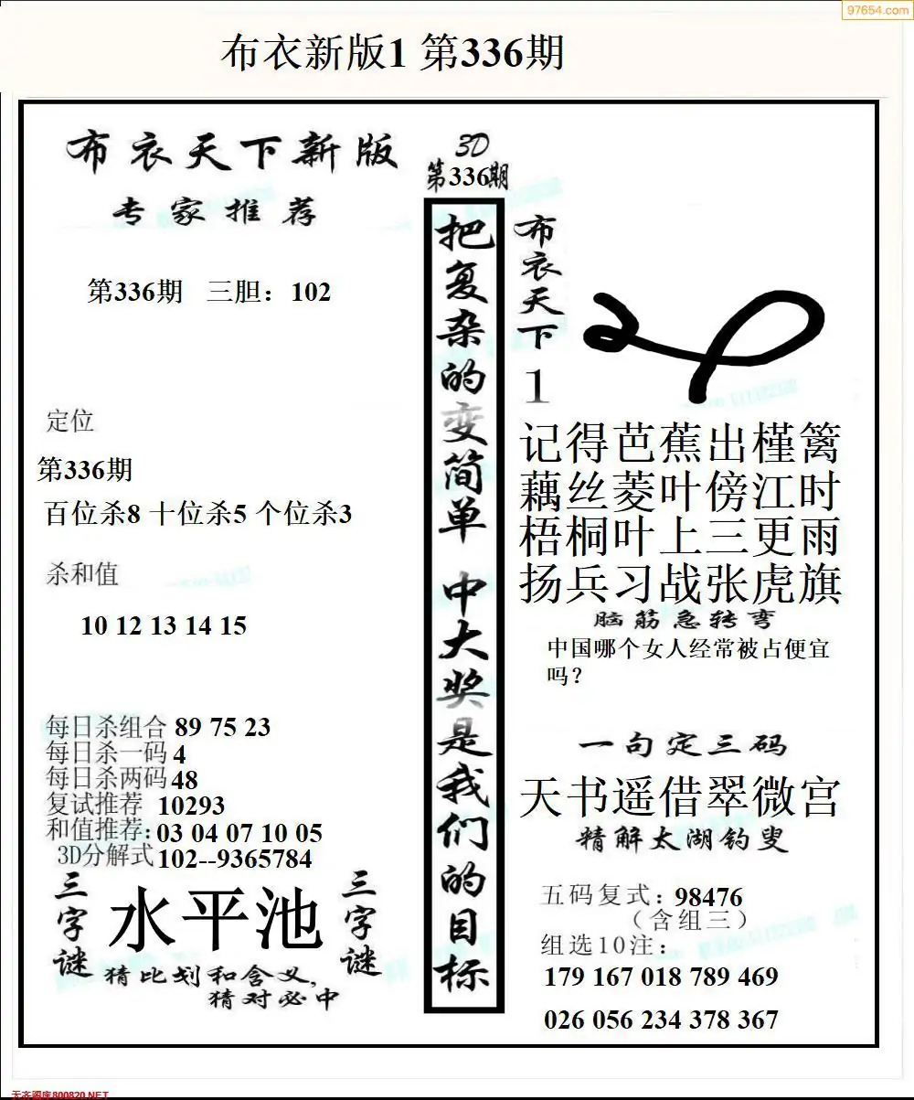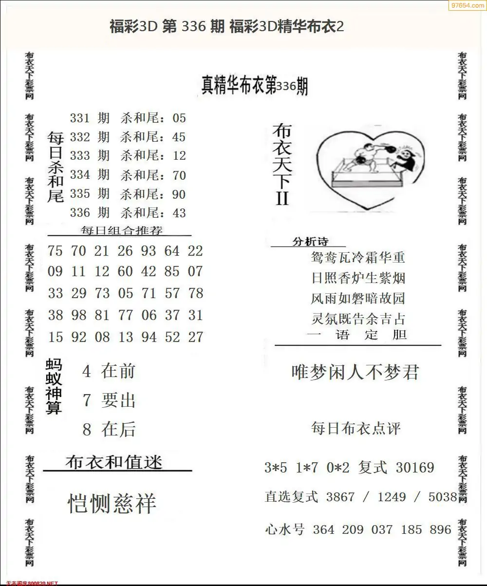 (2)25年336期本期3d图迷汇总_福彩3D图谜总汇图