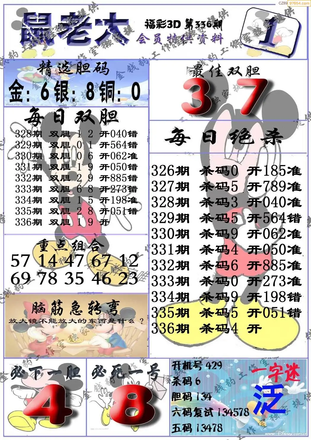 福彩3D337期天牛彩吧套图整合总汇