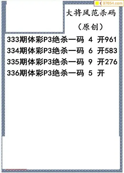 25年336期大将风范p3杀码体彩图谜