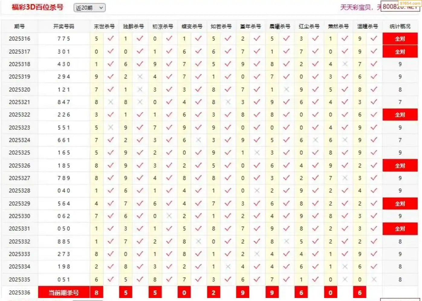 3D337期天中财神原创杀码条件汇总