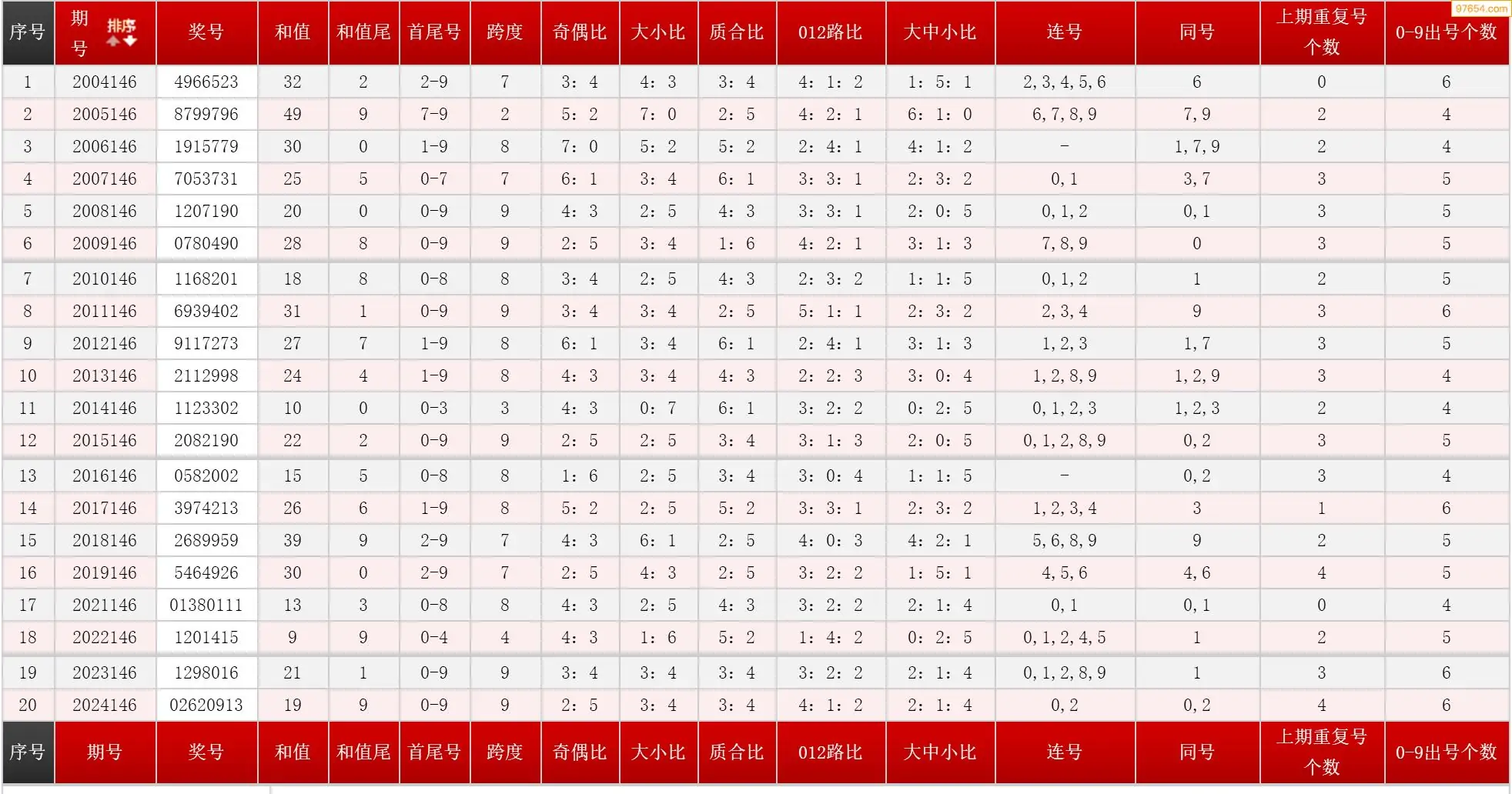 146期七星彩历史同期图表+走势图