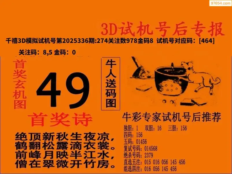 25年336期晚秋3d试机号后字谜