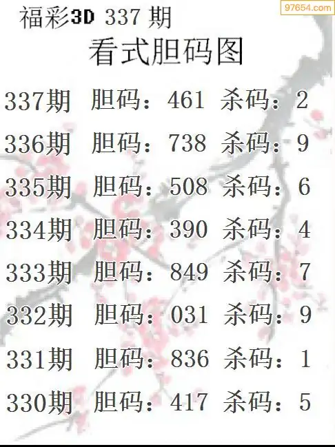 337期97654本站收集胆码出号预测
