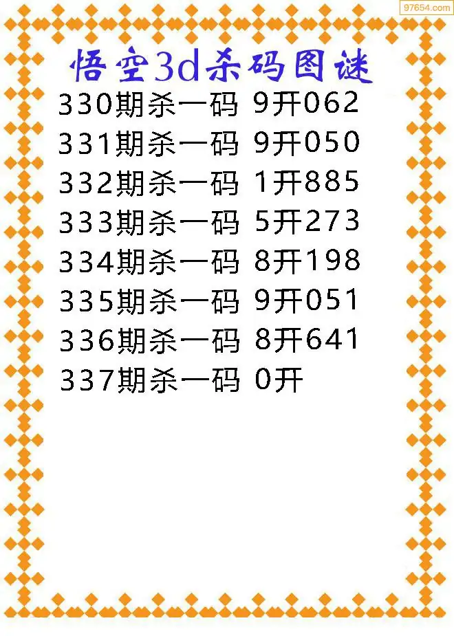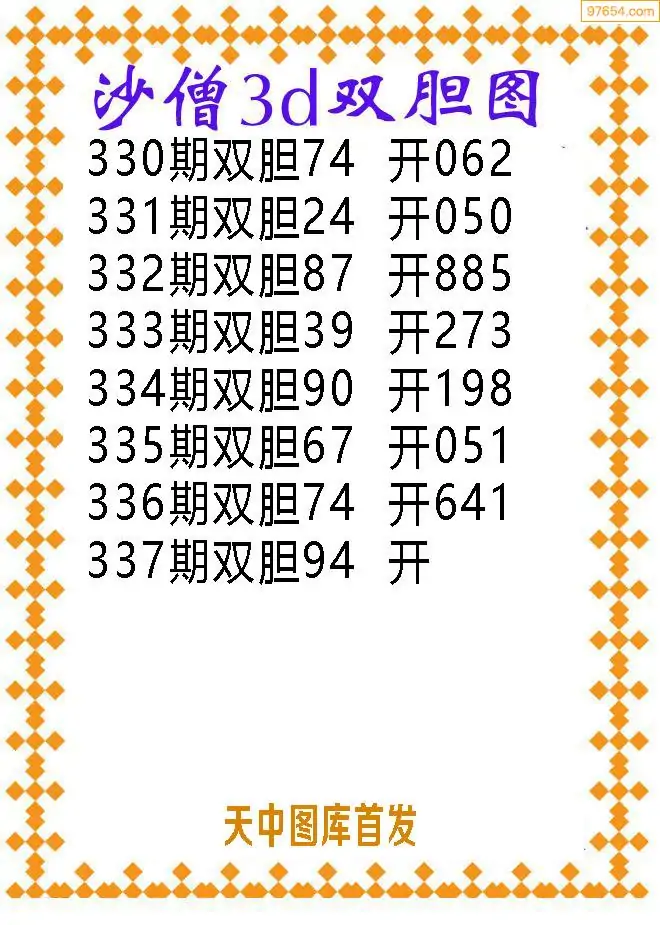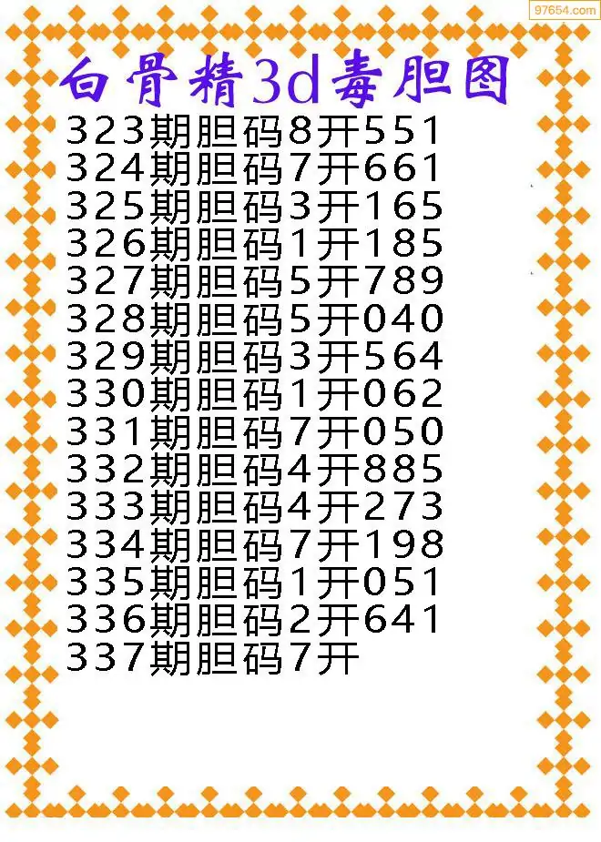 337期97654本站收集胆码出号预测