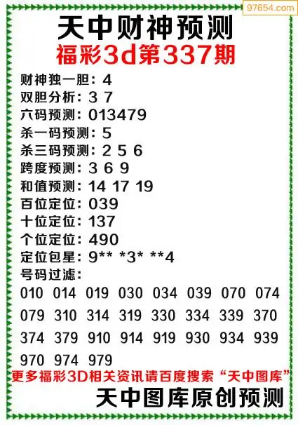 (3)2025336期3D预测总汇全图_福彩3d图谜字谜总汇
