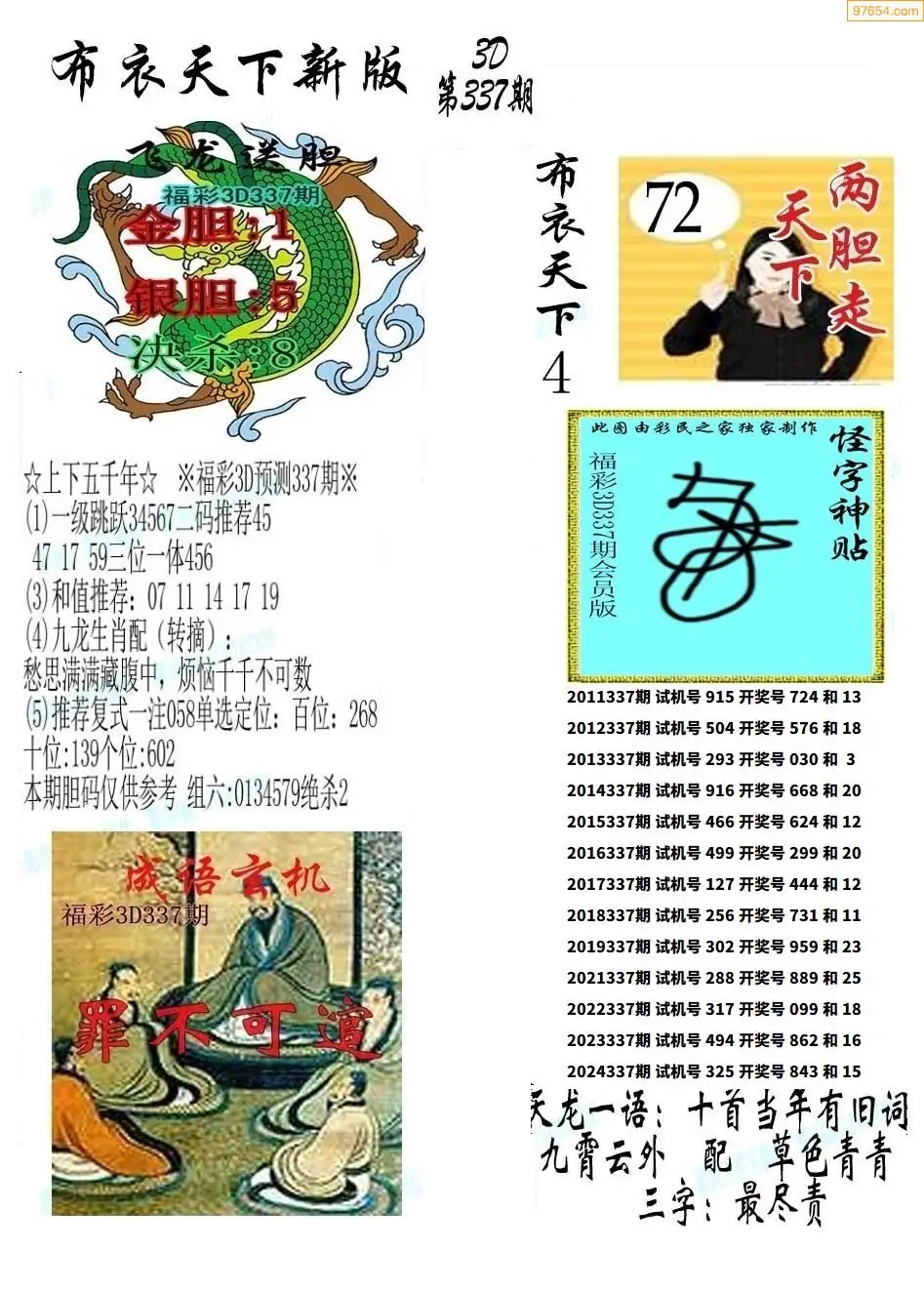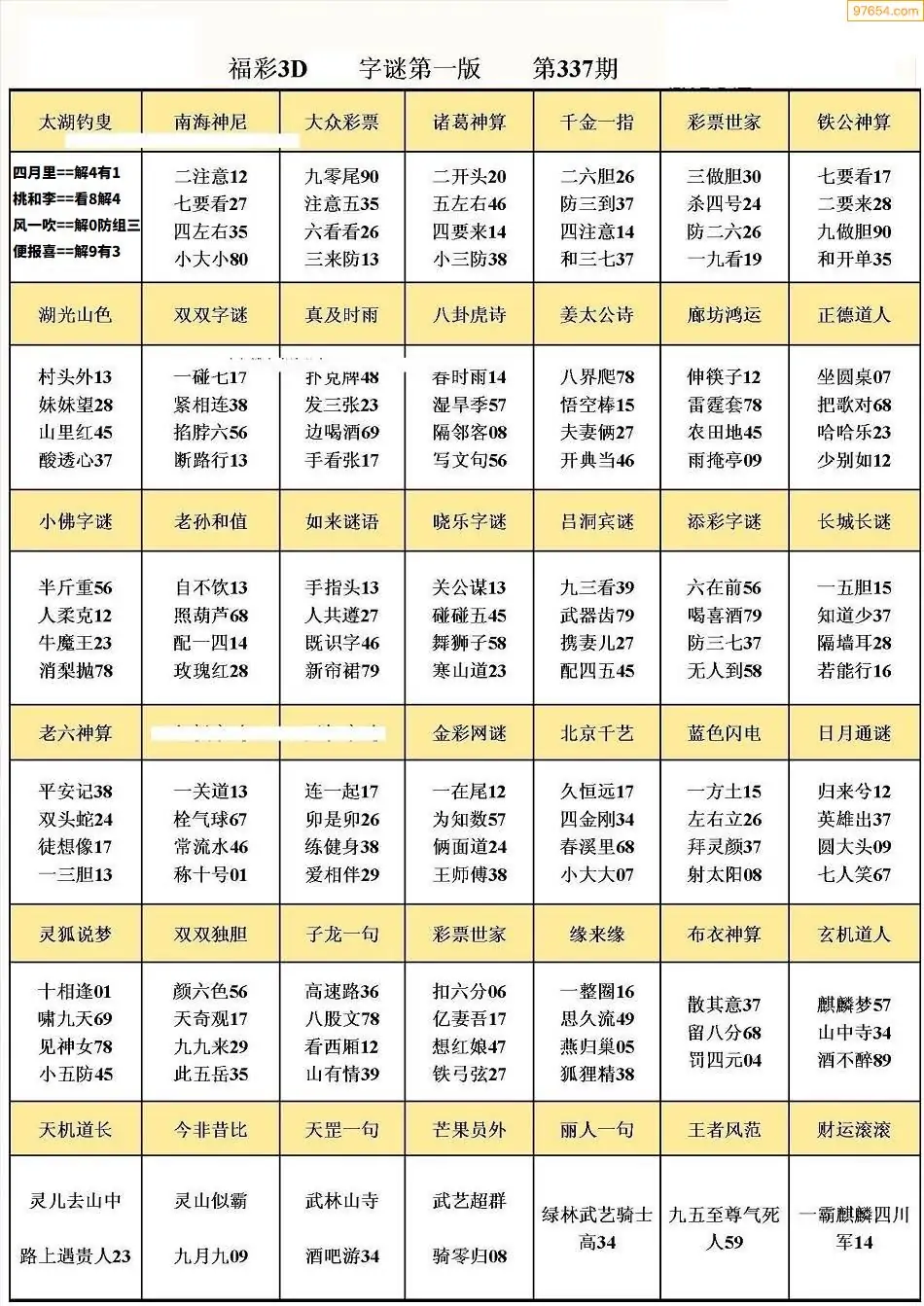 (3)2025337期3D预测总汇全图_福彩3d图谜字谜总汇