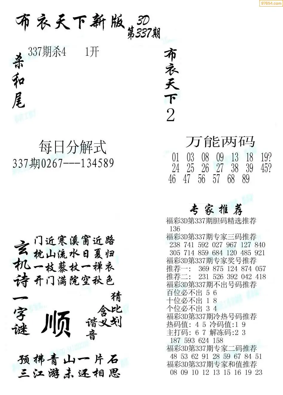 (2)25年337期本期3d图迷汇总_福彩3D图谜总汇图
