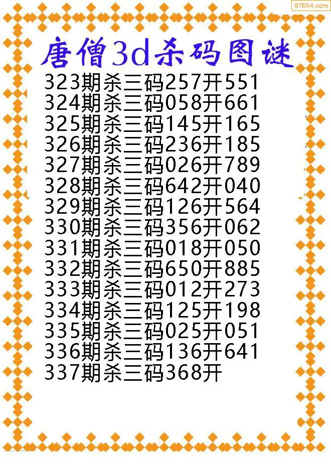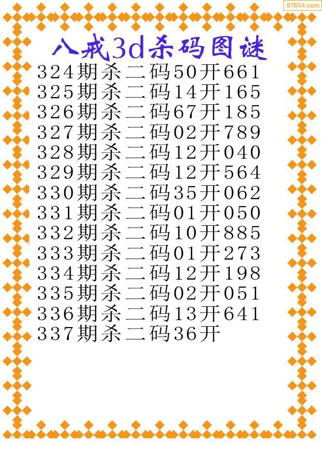 (3)2025337期3D预测总汇全图_福彩3d图谜字谜总汇