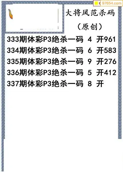 25年337期大将风范p3杀码体彩图谜