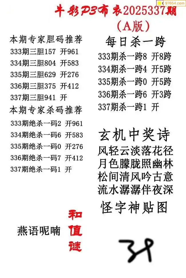 2025337期彩友图迷汇总_体彩排列三字谜图谜总汇最新更新